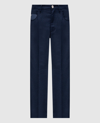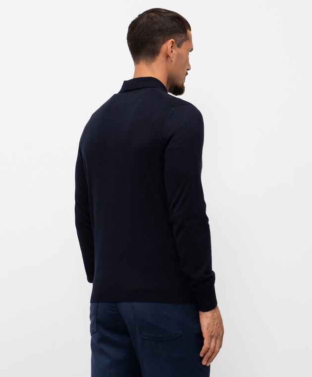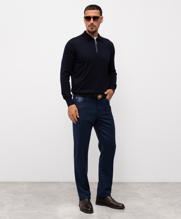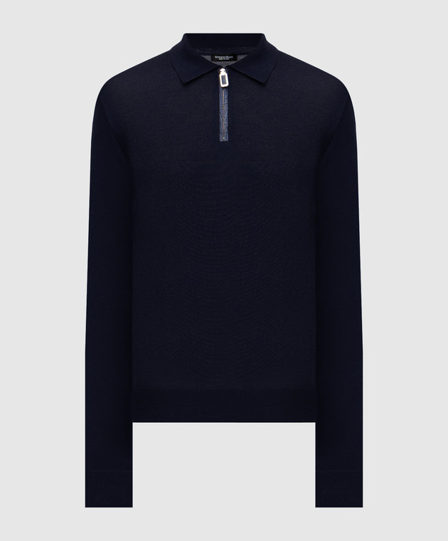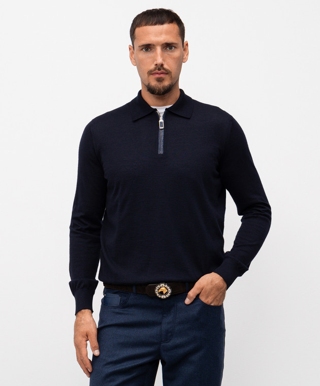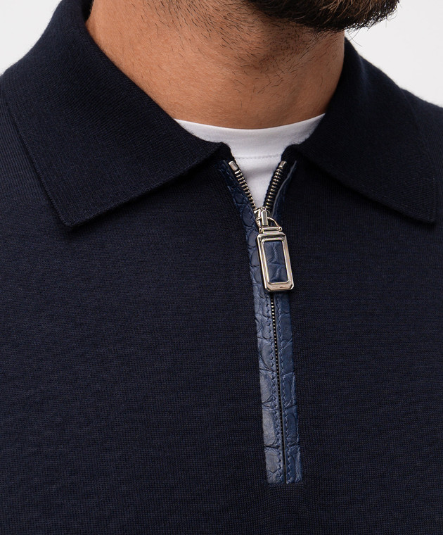 Синє поло з кашеміру та шовку зі вставкою зі шкіри крокодила