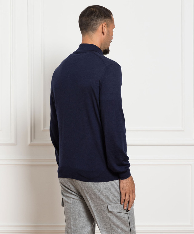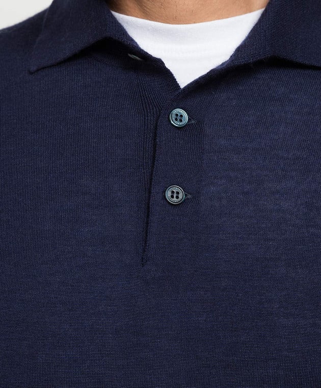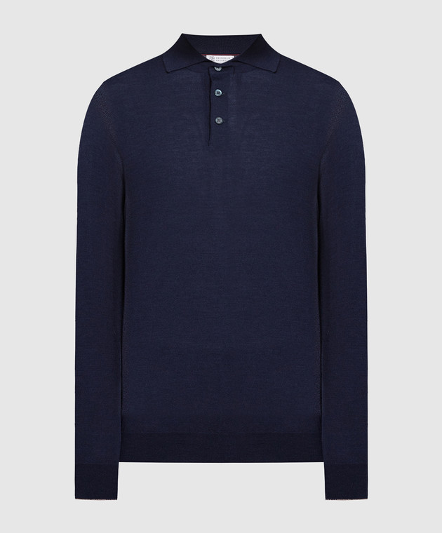 Brunello Cucinelli Синє поло з вовни і кашеміру M2400295