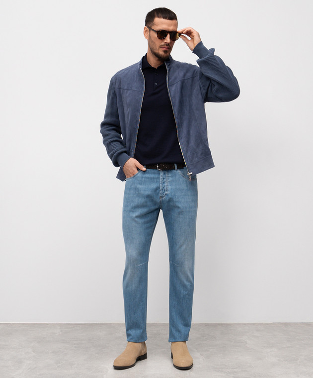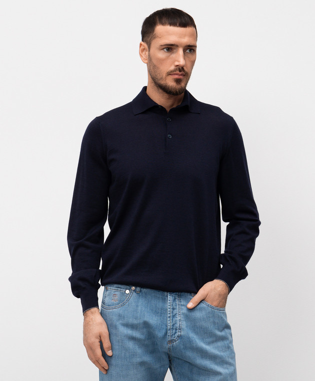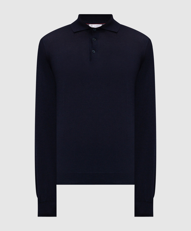 Brunello Cucinelli Синє поло з вовни та кашеміру M2400295