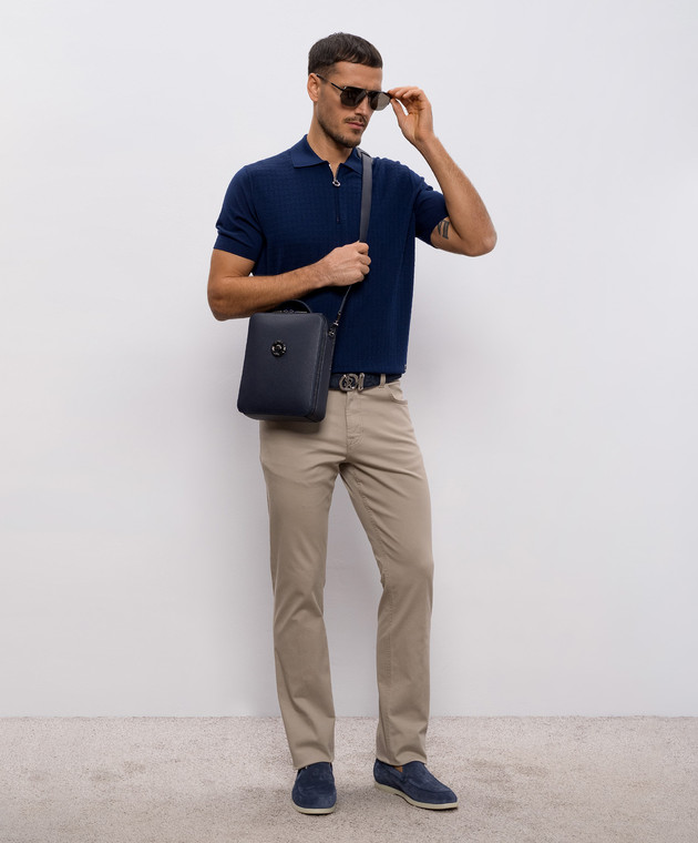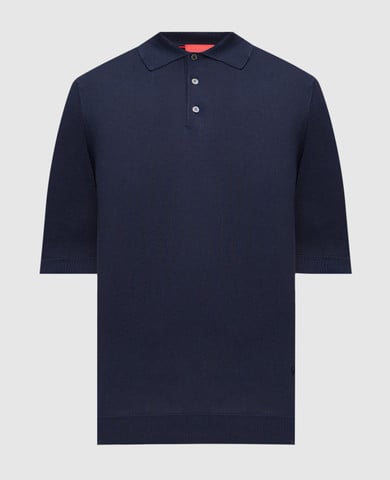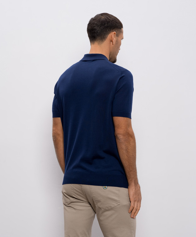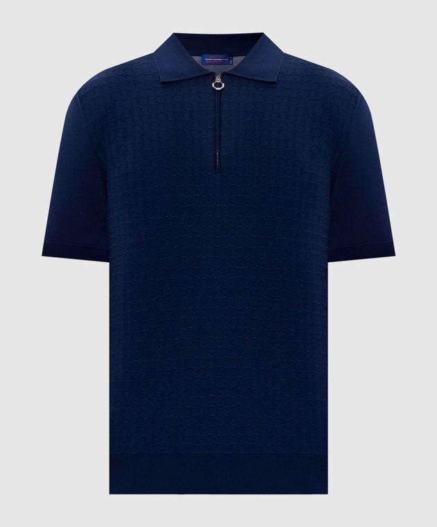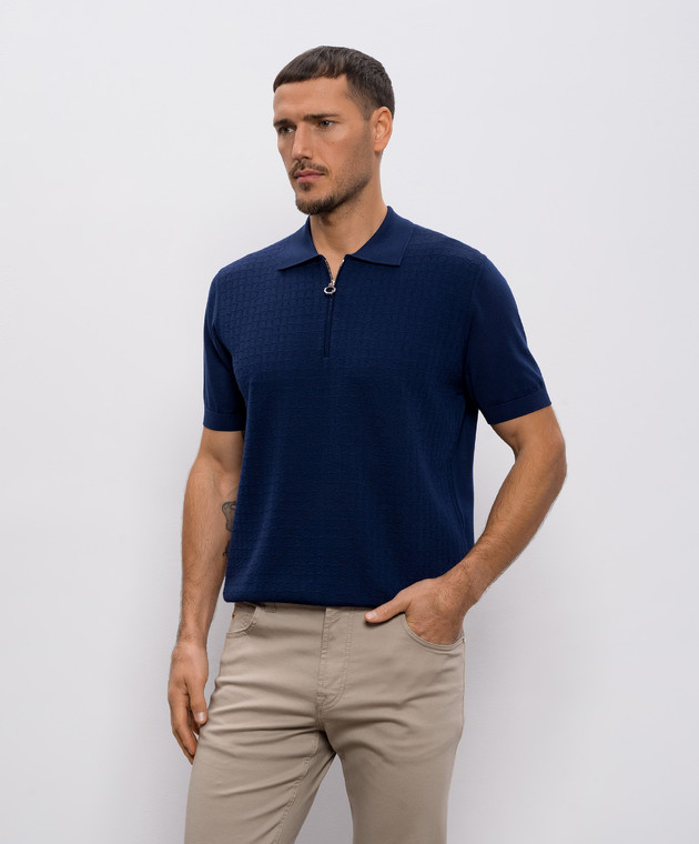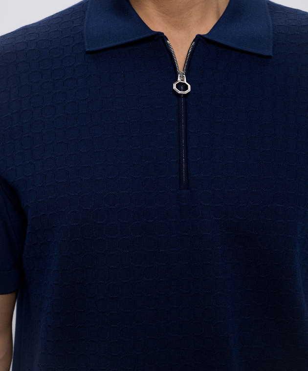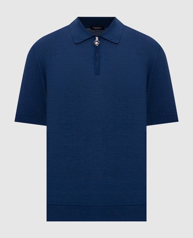 Синє поло з вовни, кашеміру та шовку у візерунок
