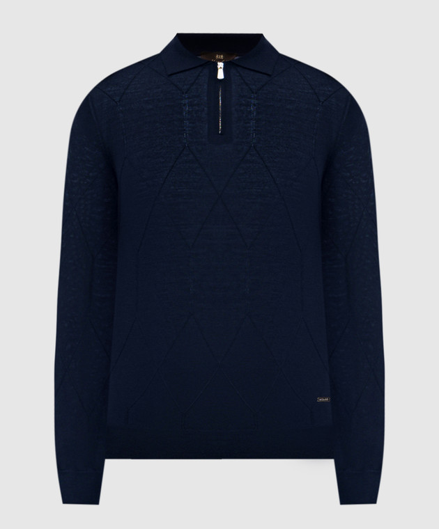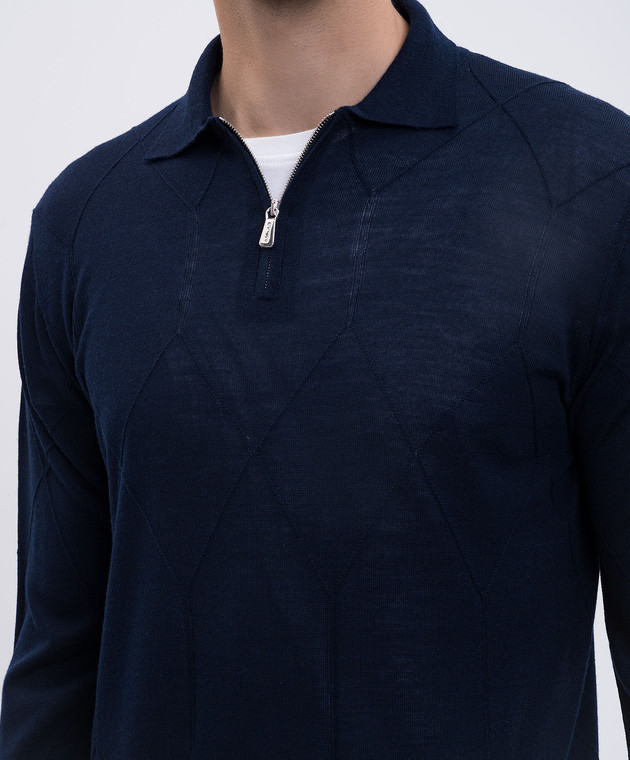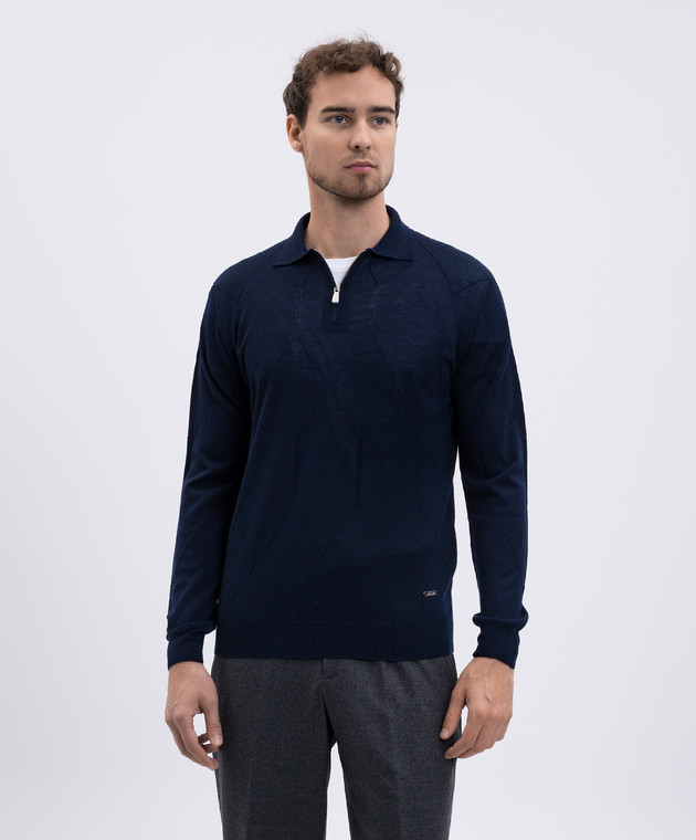 Синє поло з вовни у візерунок