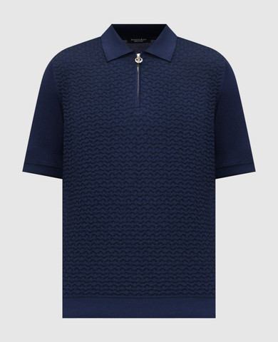 Синє поло з кашеміру і шовку в брендовий візерунок