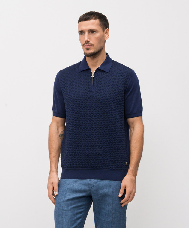 Синє поло із шовком у візерунок