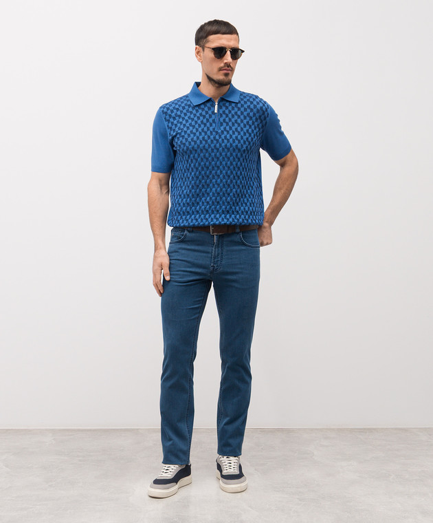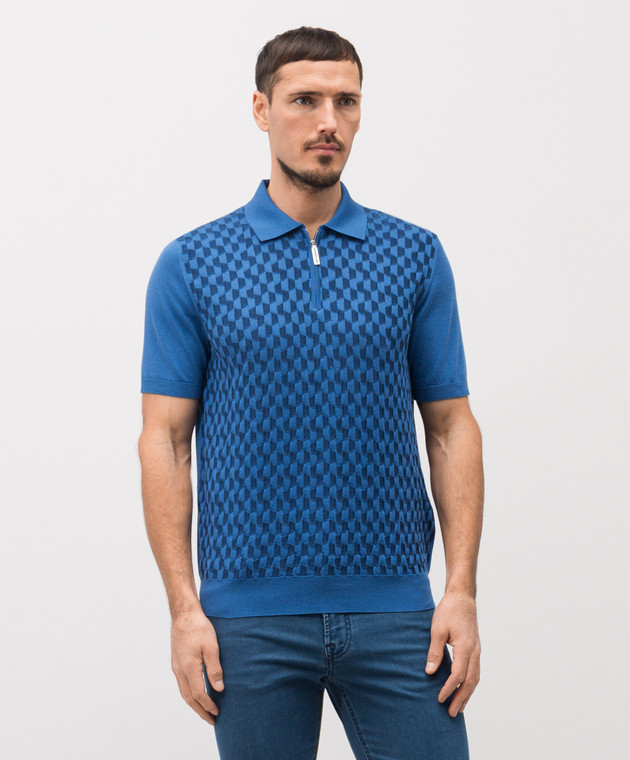 Синє поло із шовком у візерунок
