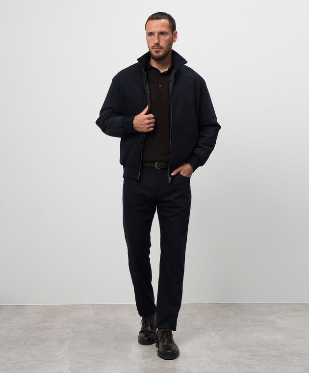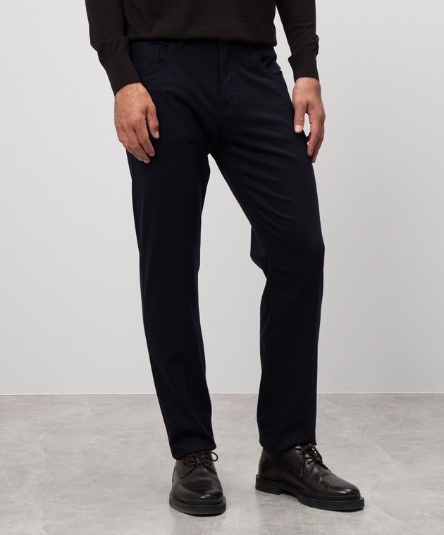 Сині штани COSTANTINO з вовною та кашеміром з вишивкою логотипа