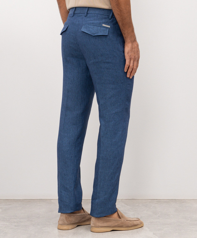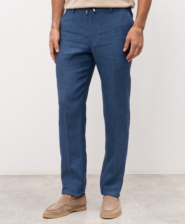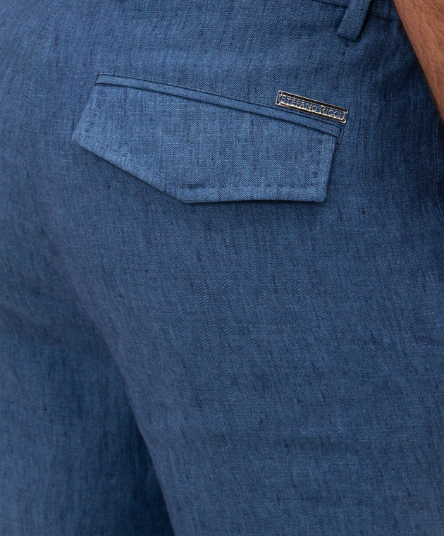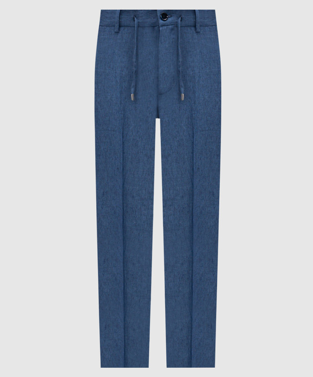 Сині штани з льону з логотипом