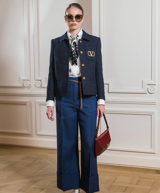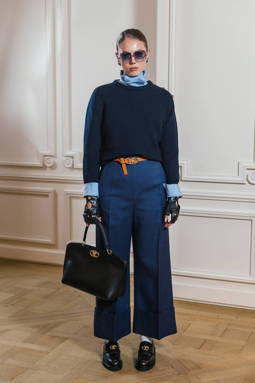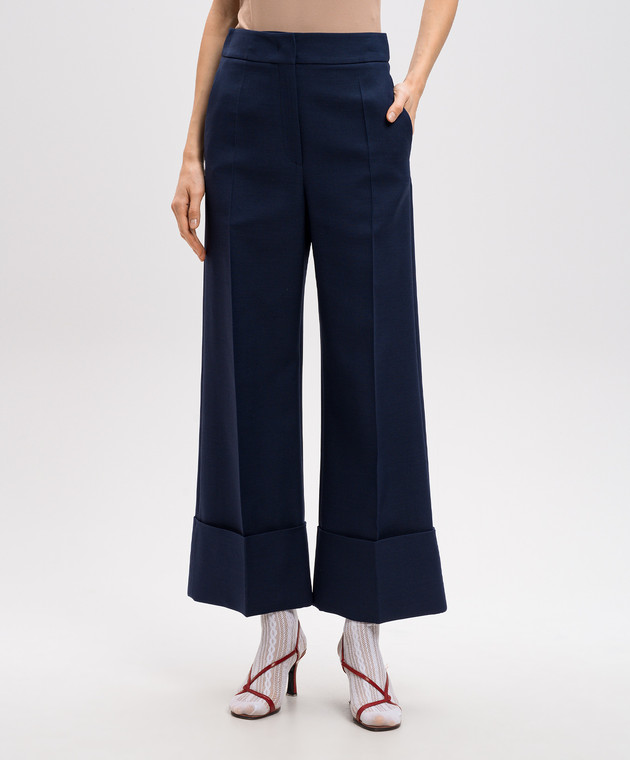 Сині штани з вовни та шовку з відворотами
