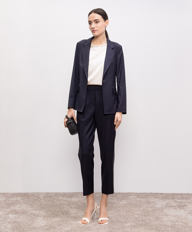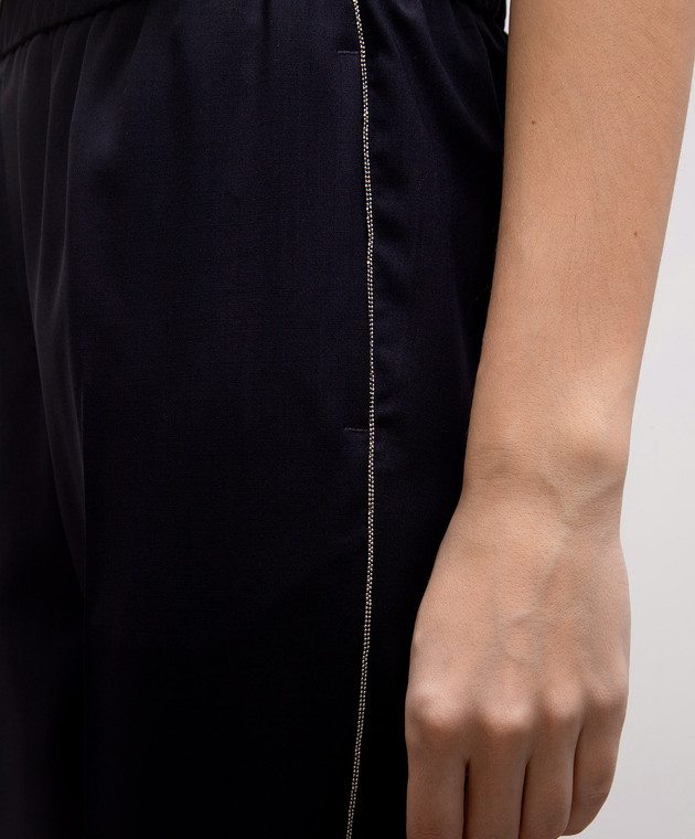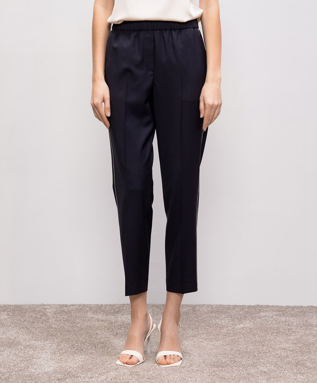 Сині штани з вовни з ланцюжком моніль