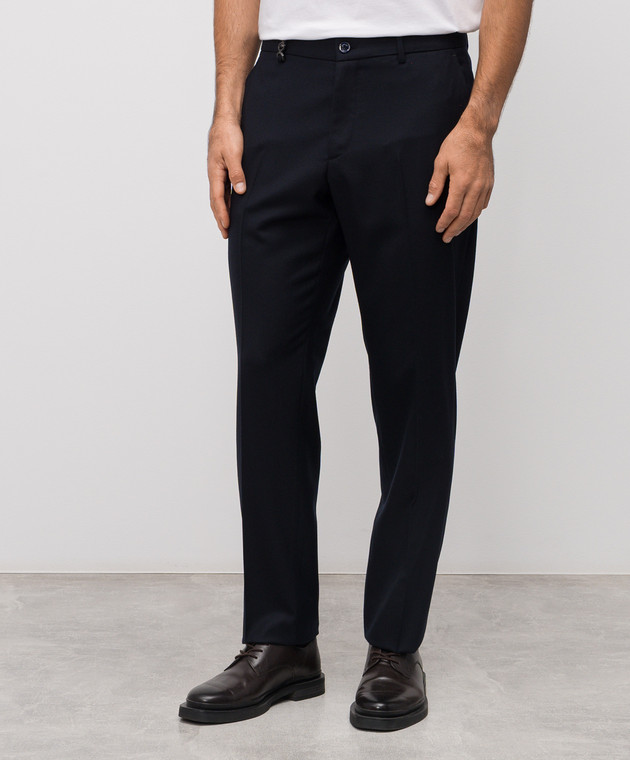 Сині штани з вовни з логотипом