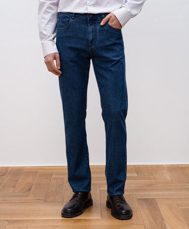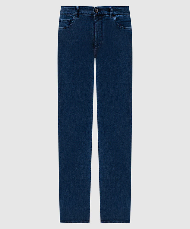 Сині штани зі шкіряним патчем логотипа