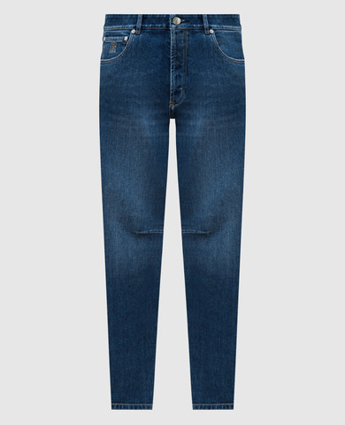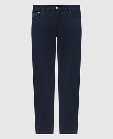 Сині штани зі шкіряним патчем логотипа