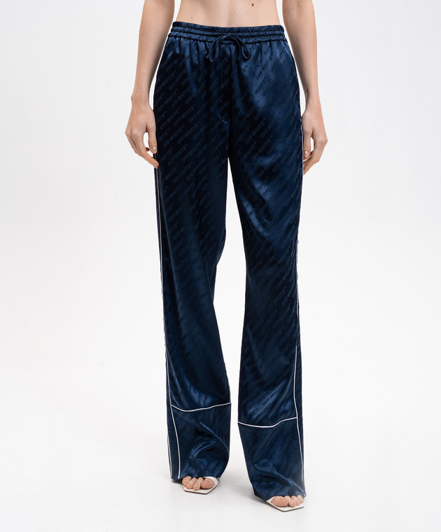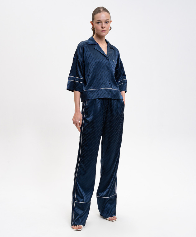 Сині штани в піжамному стилі у візерунок логотипа