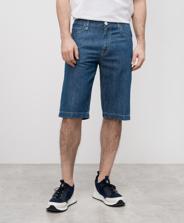 Сині джинсові шорти з льоном