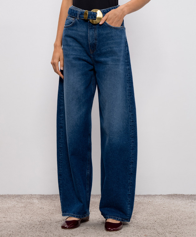 Сині джинси-банани з ефектом потертості