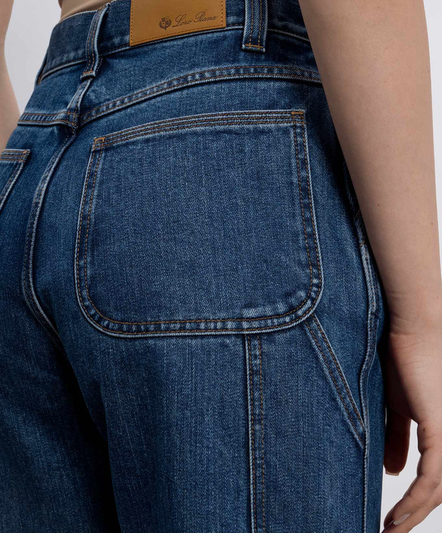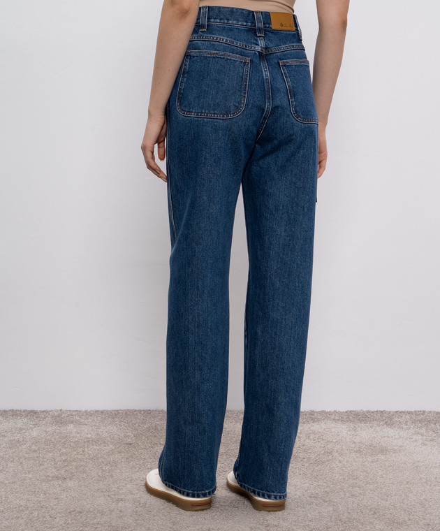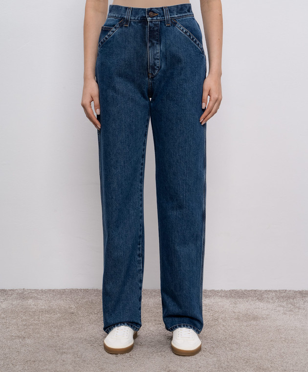 Сині джинси Etienne з шовком зі шкіряним патчем логотипа