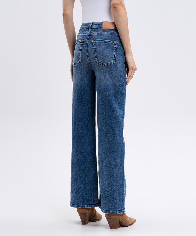 Сині джинси кльош з ефектом потертості