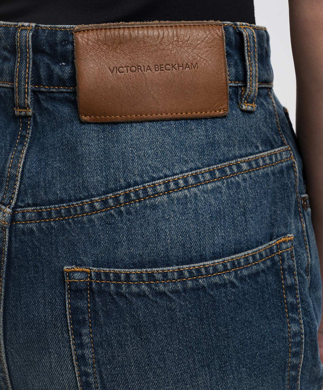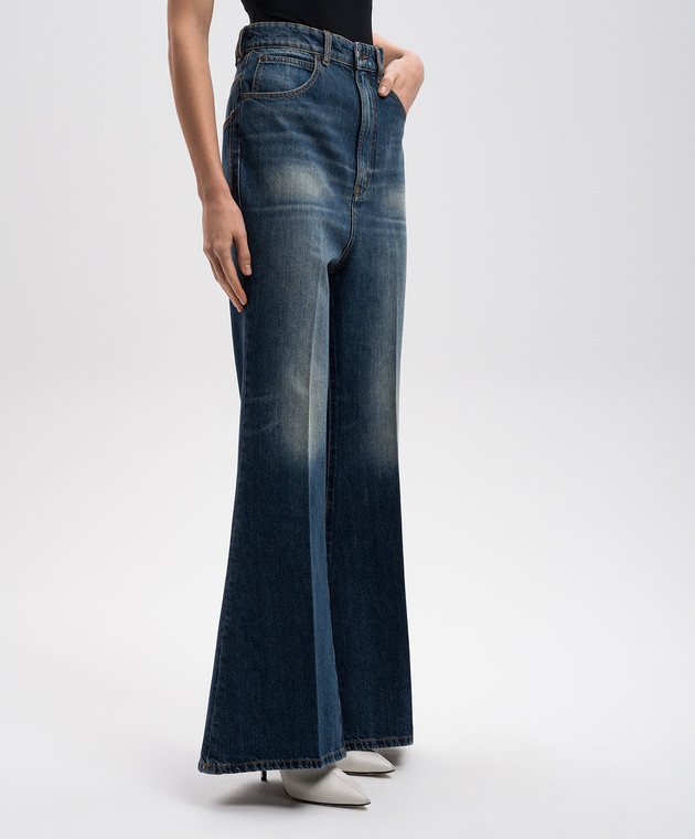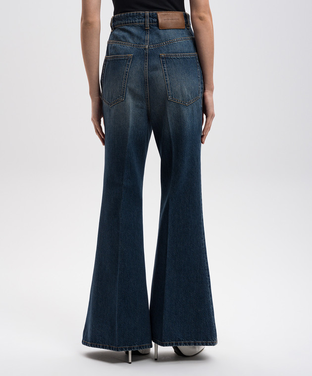 Сині джинси кльош зі шкіряним патчем логотипа