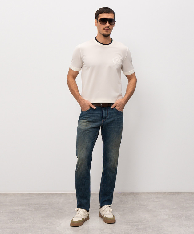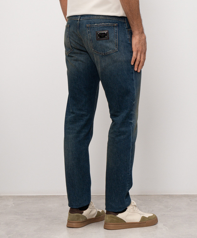 Сині джинси з ефектом потертості з нашивкою логотипа