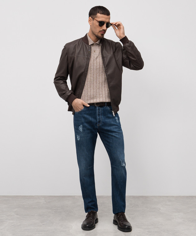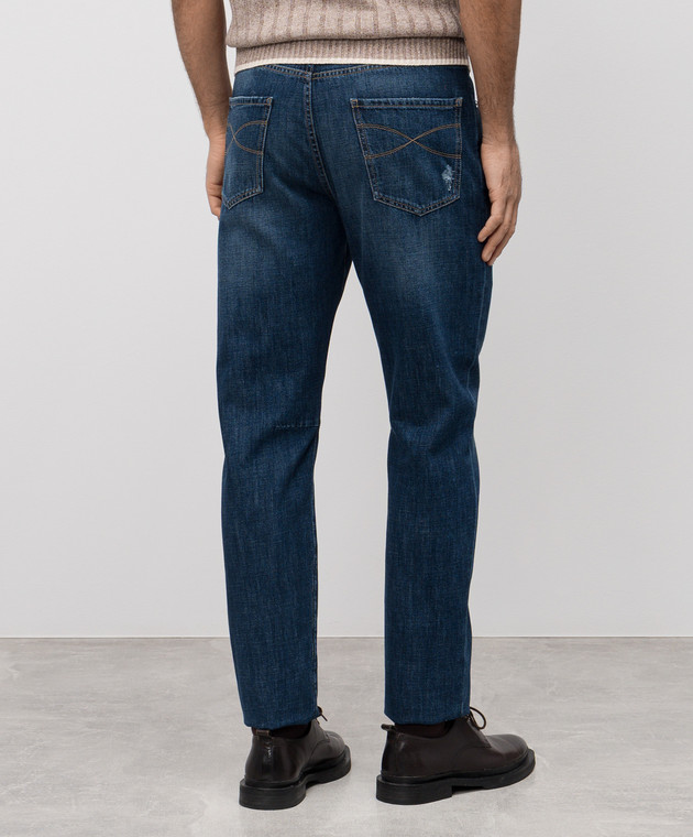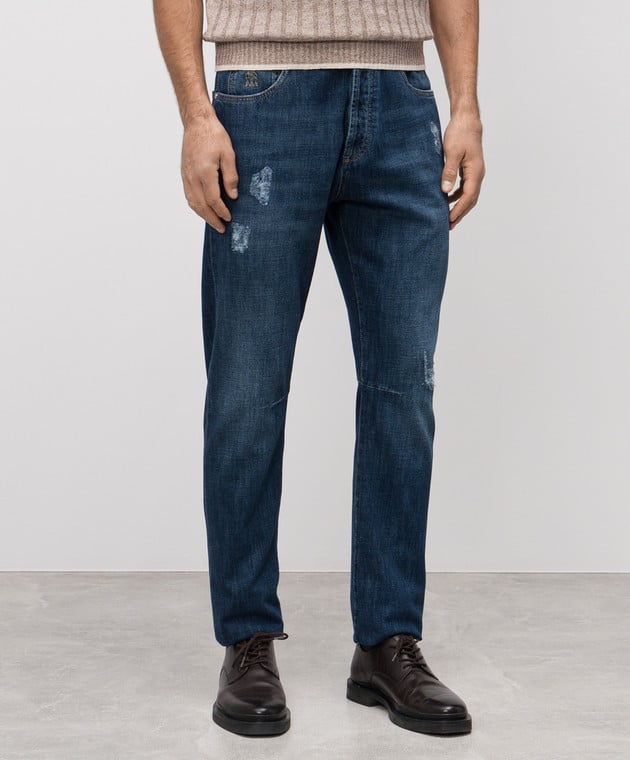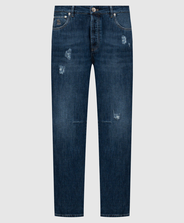 Сині джинси з проріхами з логотипом