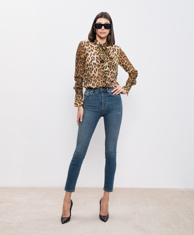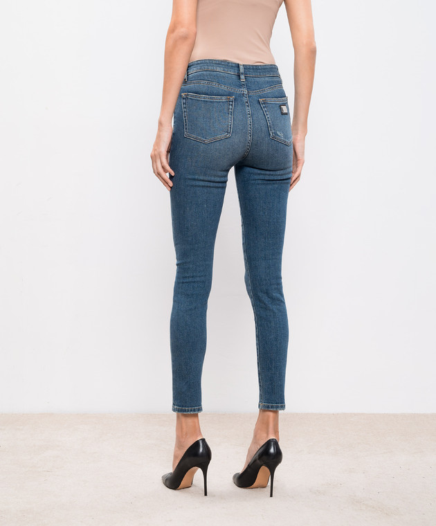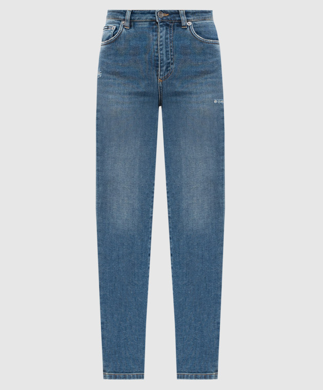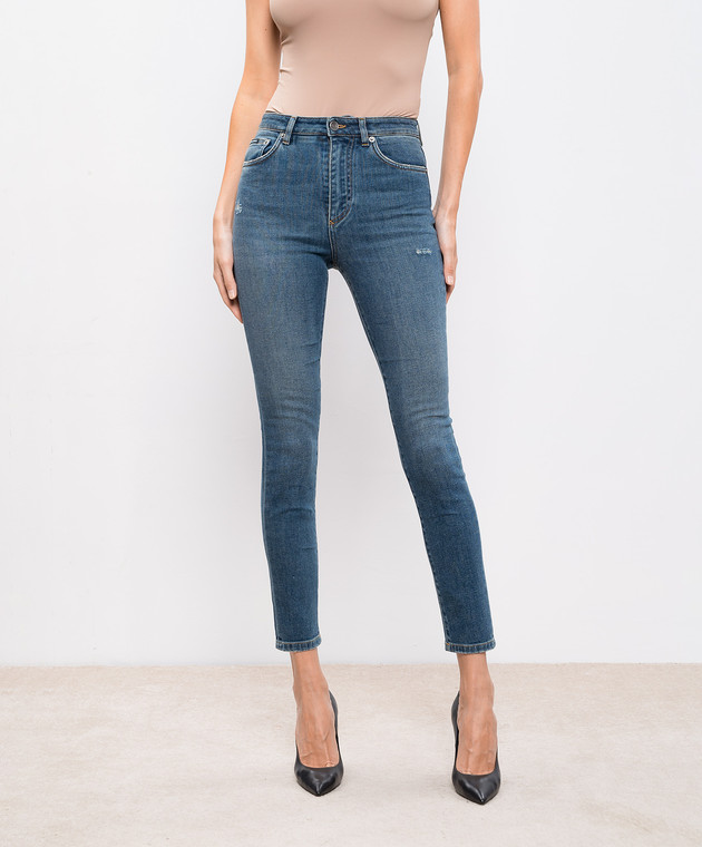 Сині джинси скіні з ефектом потертості з логотипом