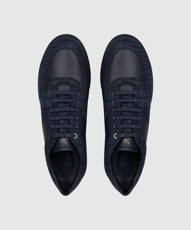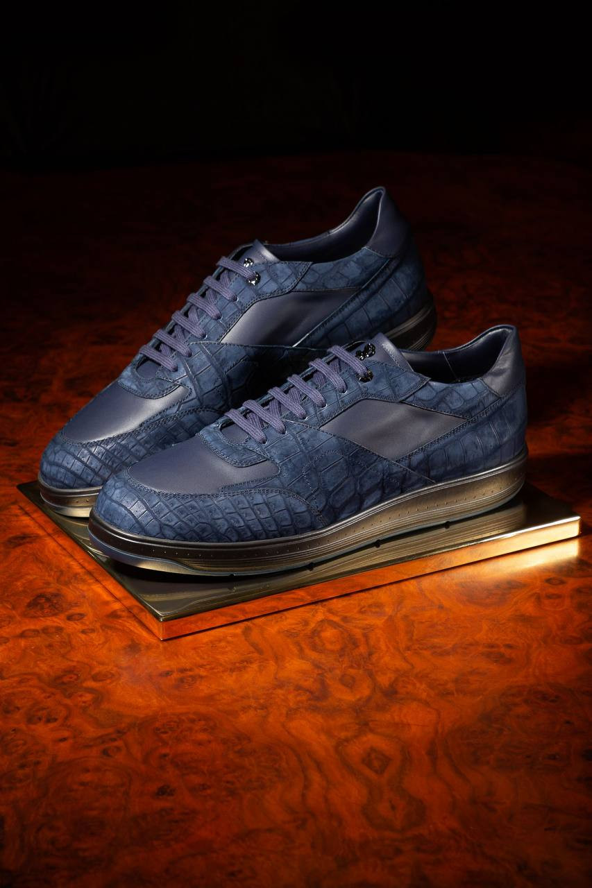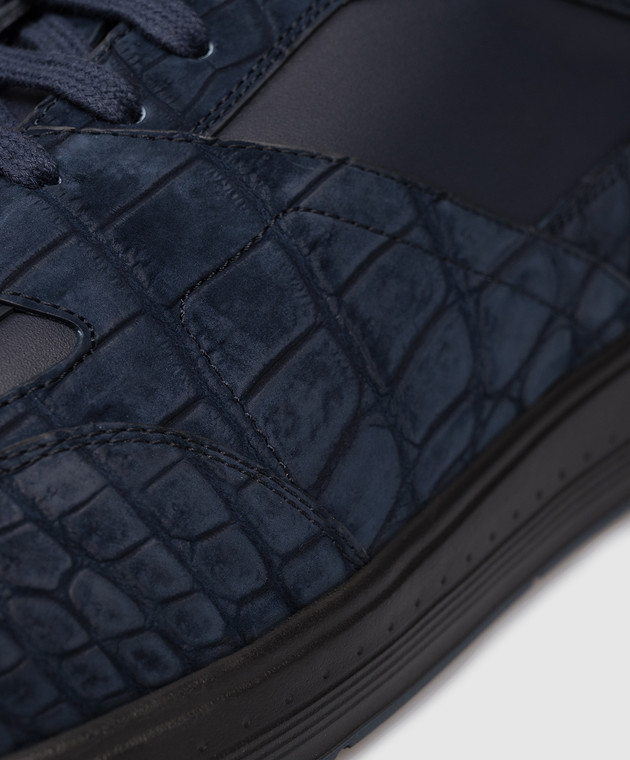 Сині кросівки з нубуку шкіри крокодила