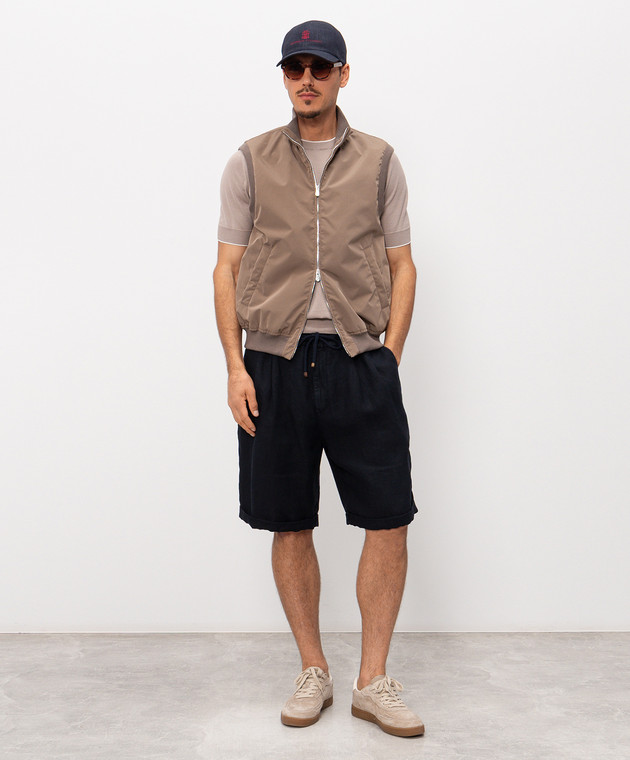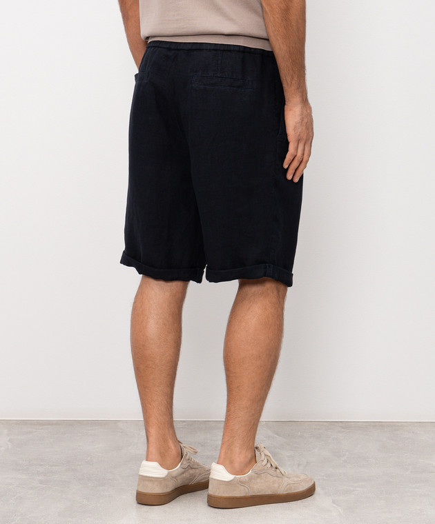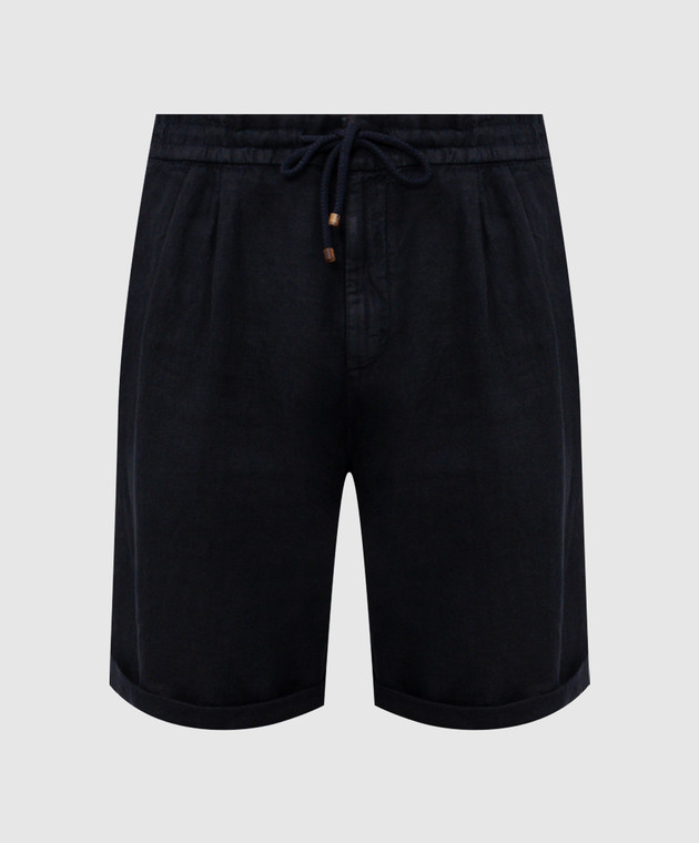 Сині шорти з льону з відворотами