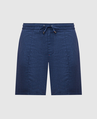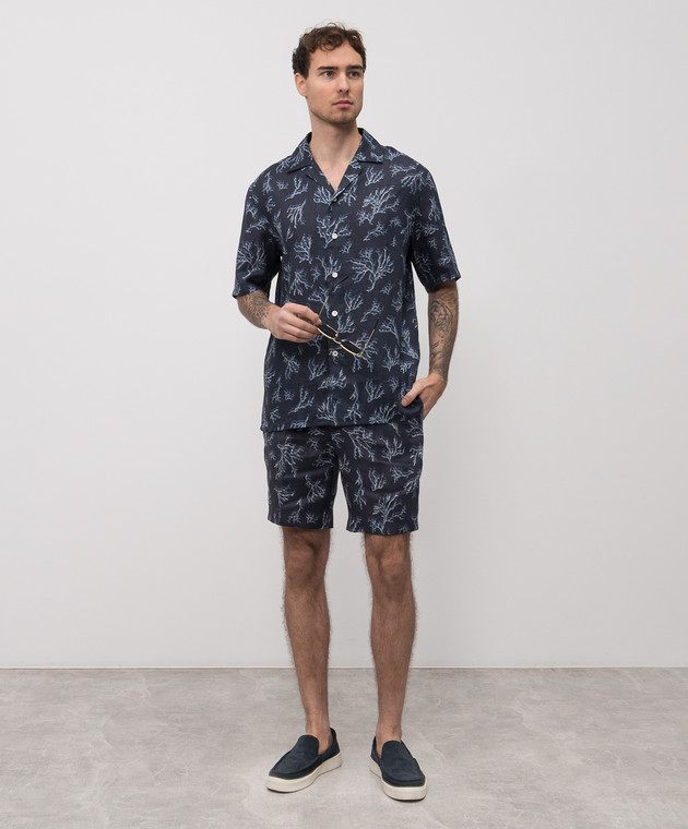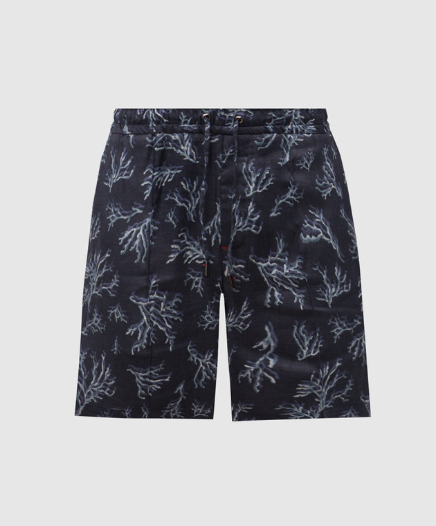Сині шорти з льону в принт