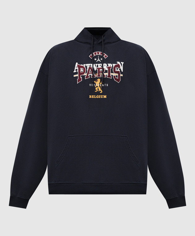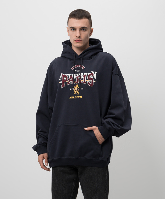 Синє худі з брендовою нашивкою з подвійним капюшоном