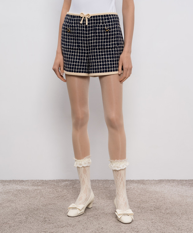 Сині твідові шорти з вовною в клітинку