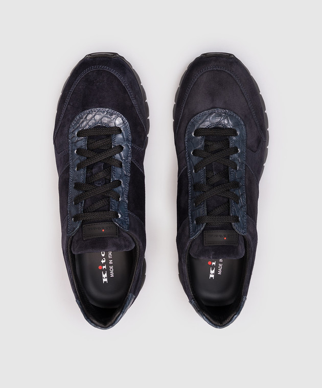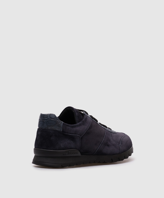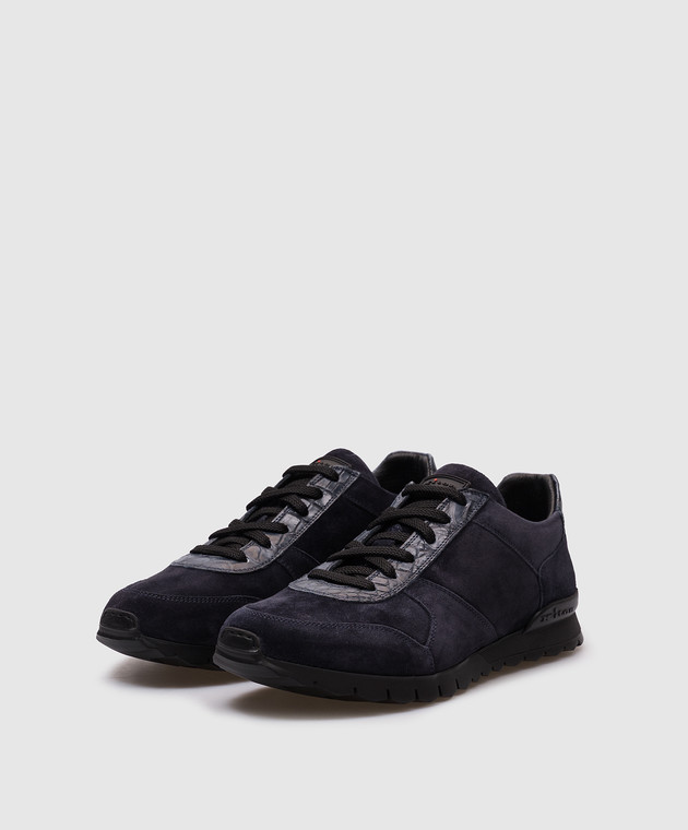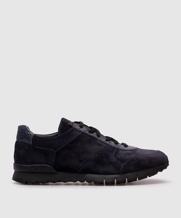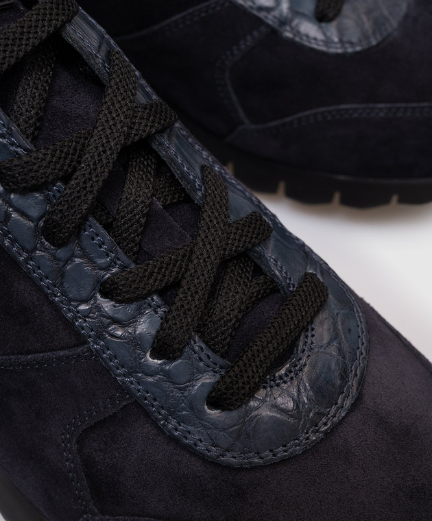 Сині замшеві кросівки зі вставками зі шкіри крокодила