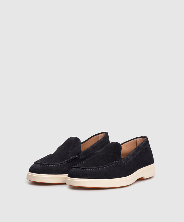 Сині замшеві лофери з логотипом