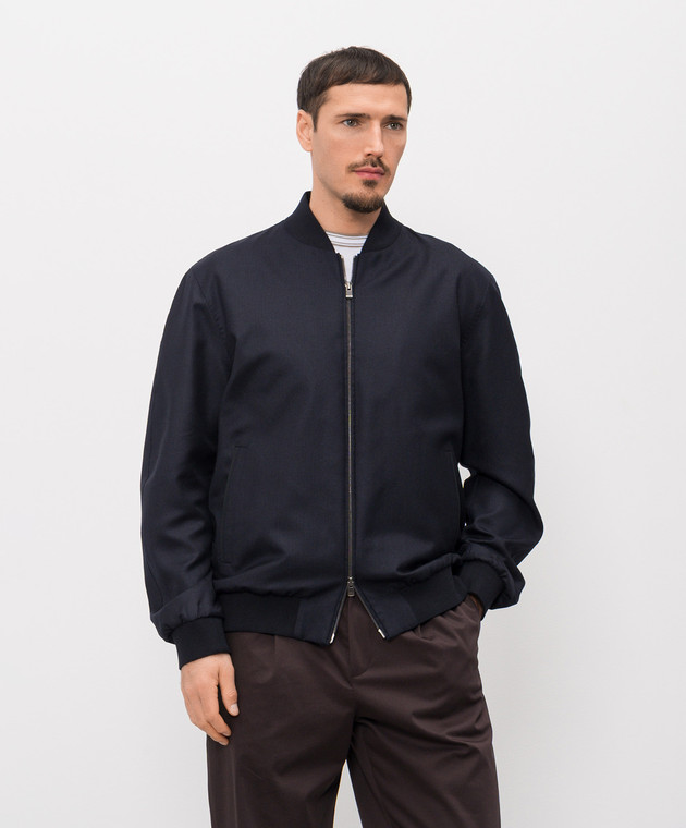 Синій бомбер з кашеміру та шовку