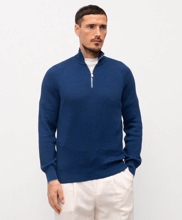 Синій джемпер в рубчик