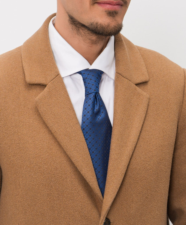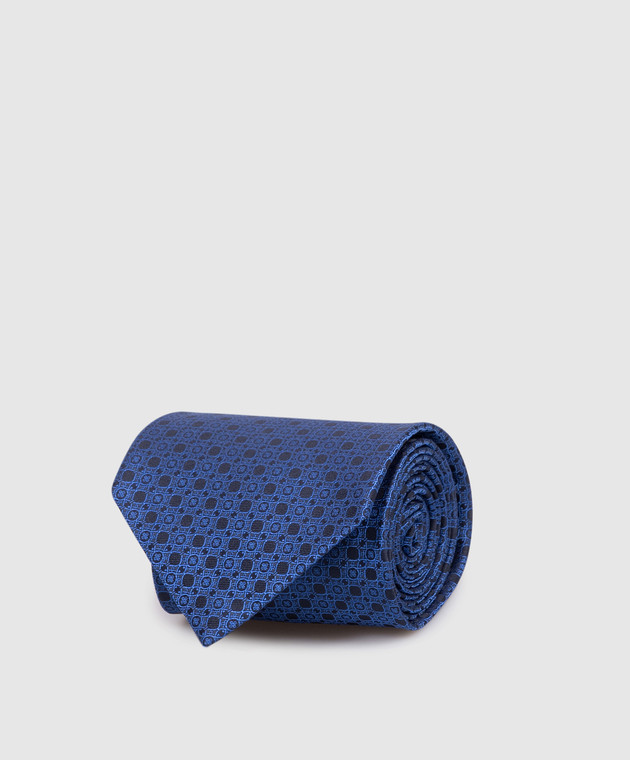 Синя краватка із шовку в брендовий візерунок