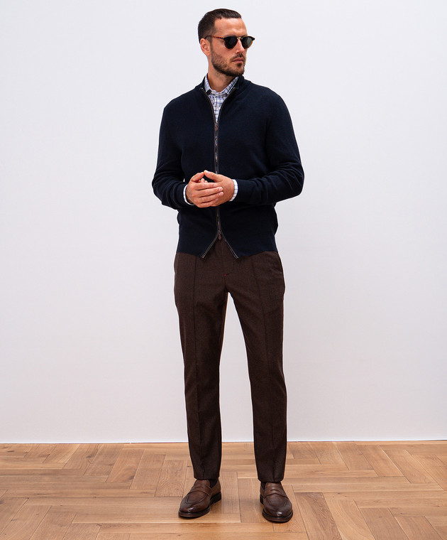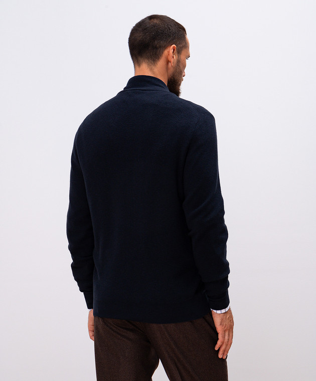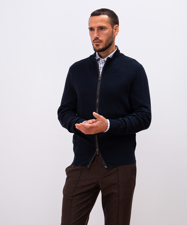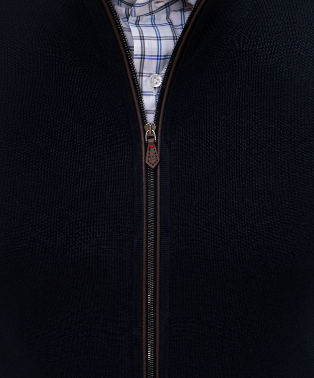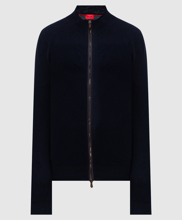 Синій кардиган з шовку і кашеміру з вишивкою логотипа