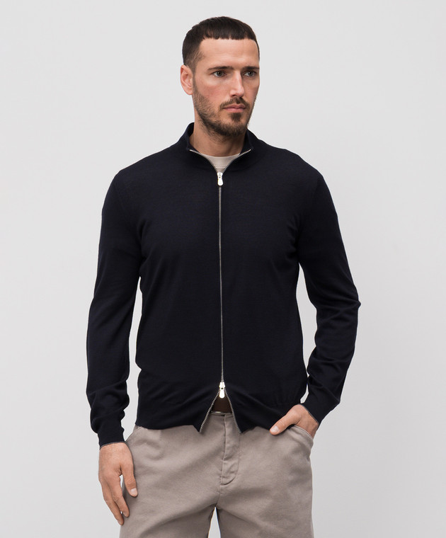 Brunello Cucinelli Синій кардиган з вовни та кашеміру M2400106