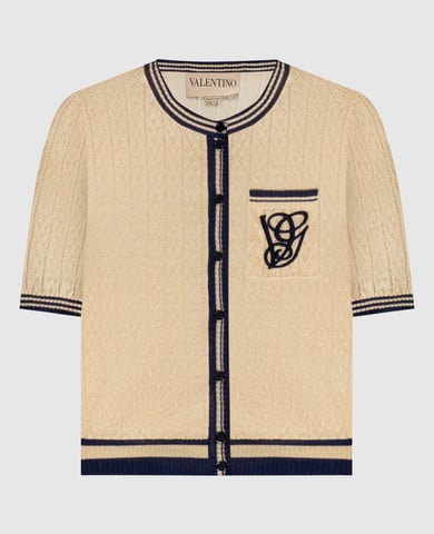 Синій кардиган з вовни з монограмою логотипа