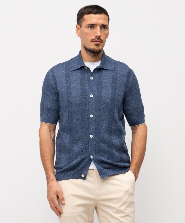 Синій кардиган з льоном