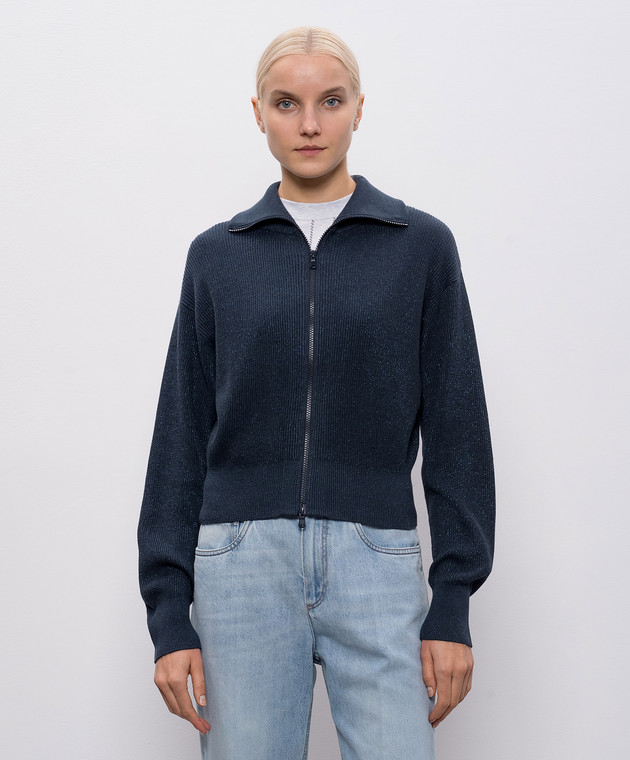 Синій кардиган з люрексом