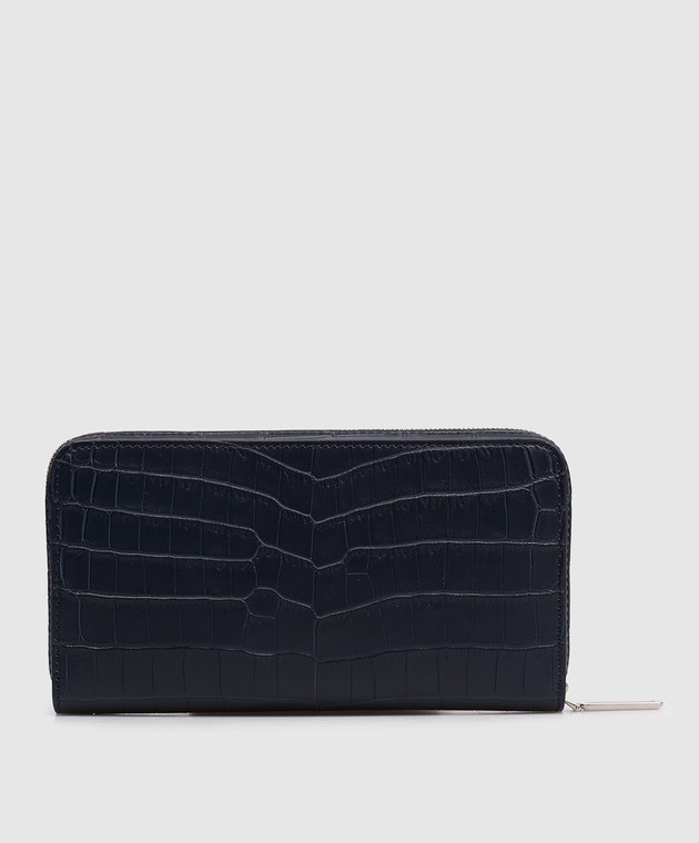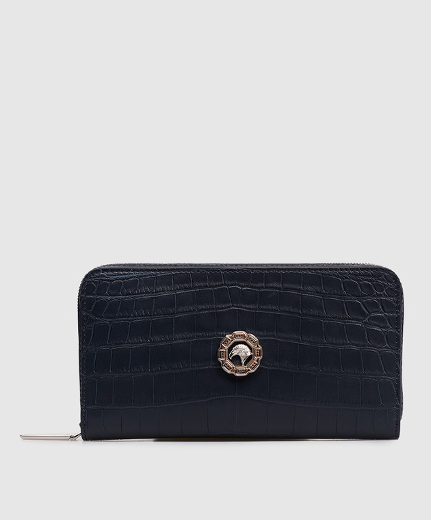Синій гаманець зі шкіри крокодила з емблемою з палладієвим покриттям