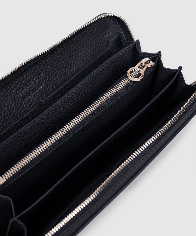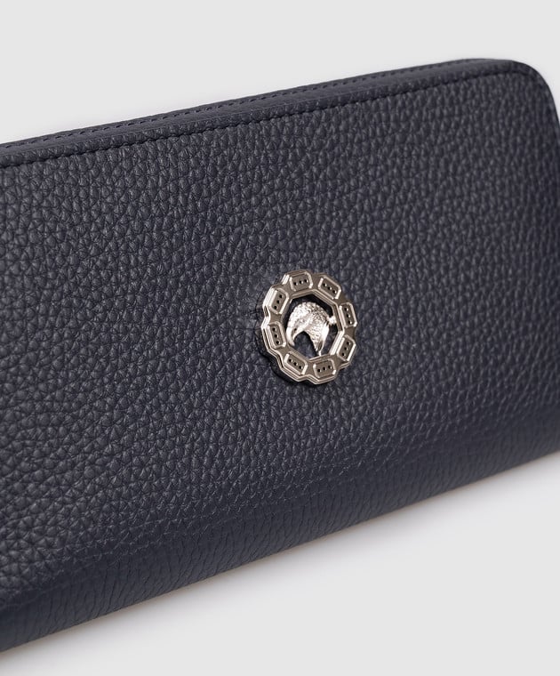 Синій шкіряний гаманець з емблемою з палладієвим покриттям