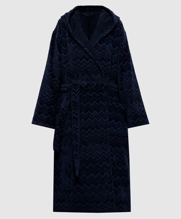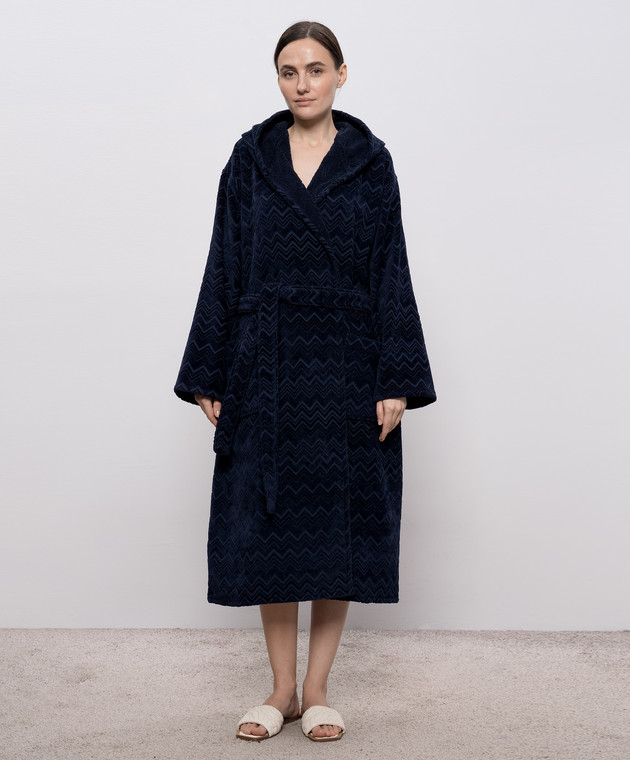 Синій махровий халат Chalk в брендовий візерунок