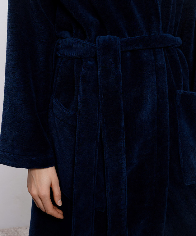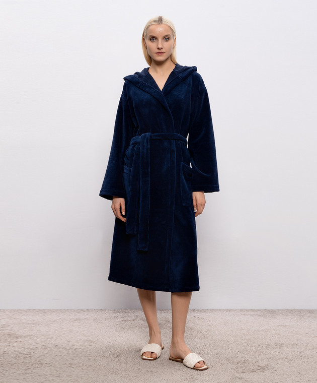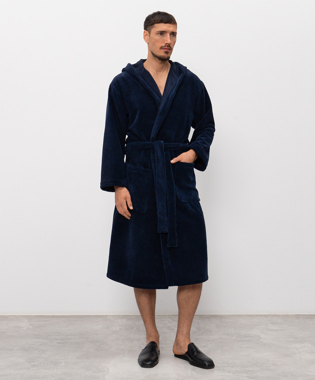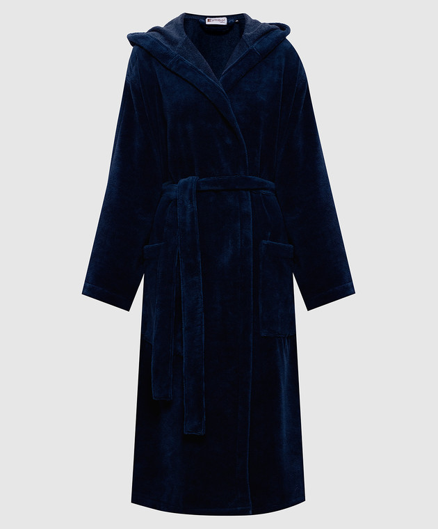 Синій махровий халат з капюшоном