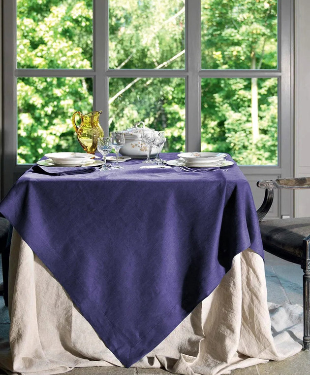 Синій набір зі скатертини та серветок TIZIANO з льону