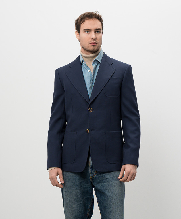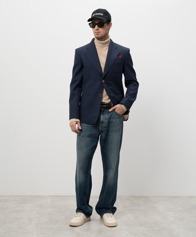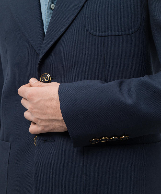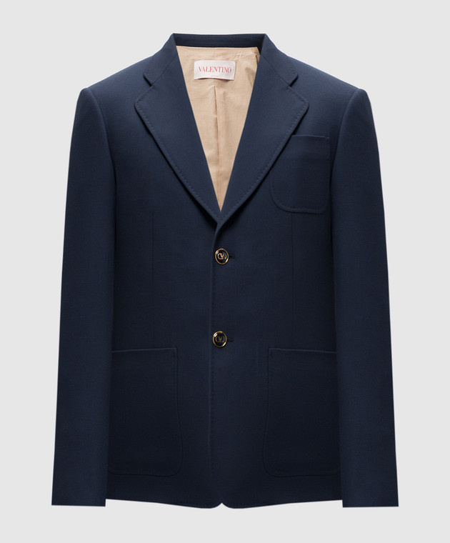 Синій піджак з вовни з емблемою VLogo Signature