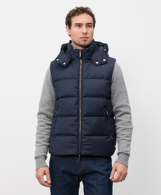 Синій пуховий жилет Fire з вовни та кашеміру