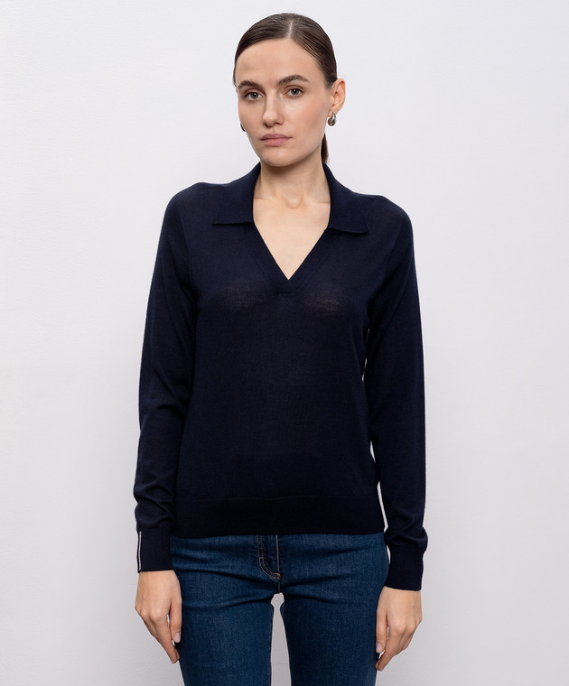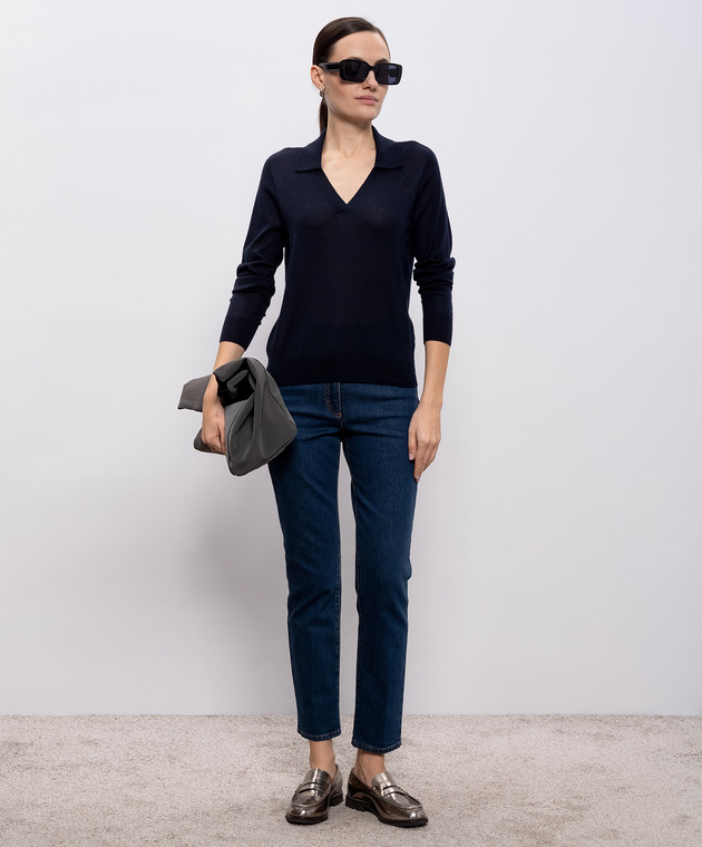 Синій пуловер з кашеміру та шовку