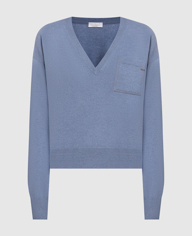 Синій пуловер з кашеміру з ланцюжком моніль