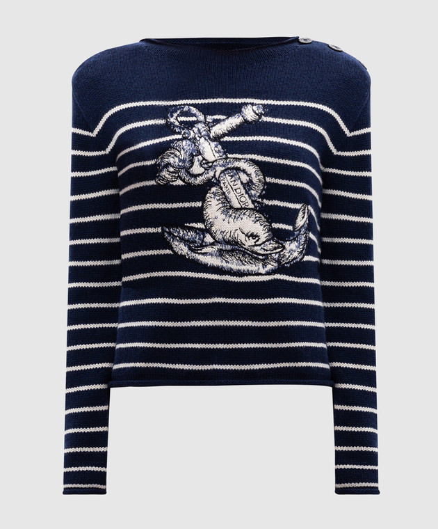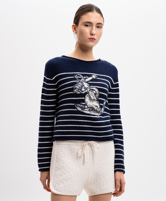 Синій светр з кашеміру з вишивкою
