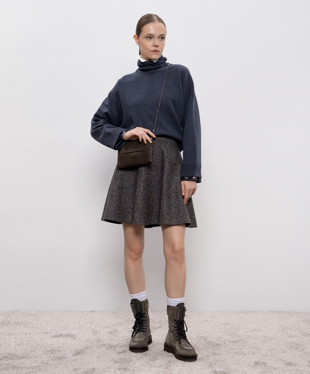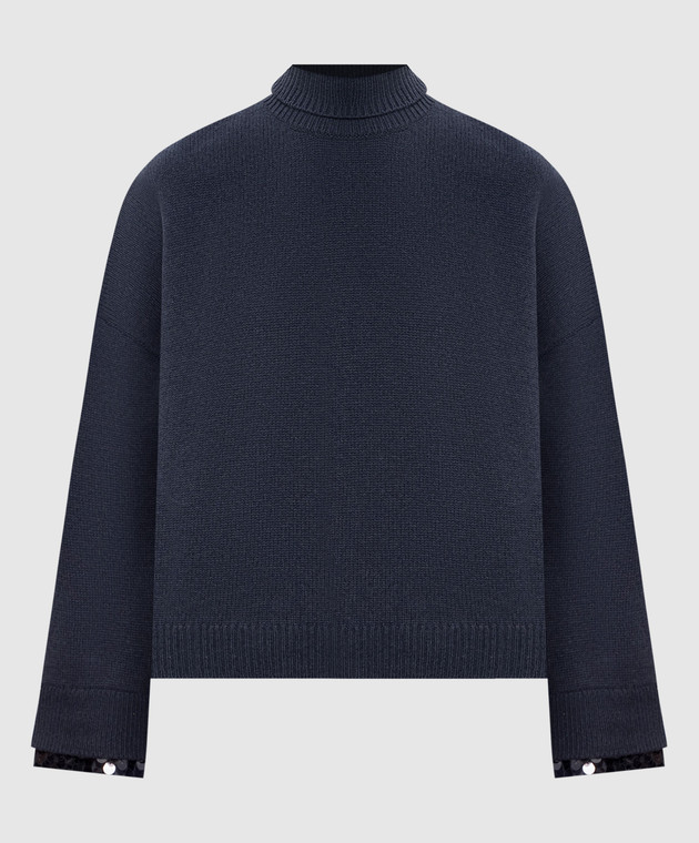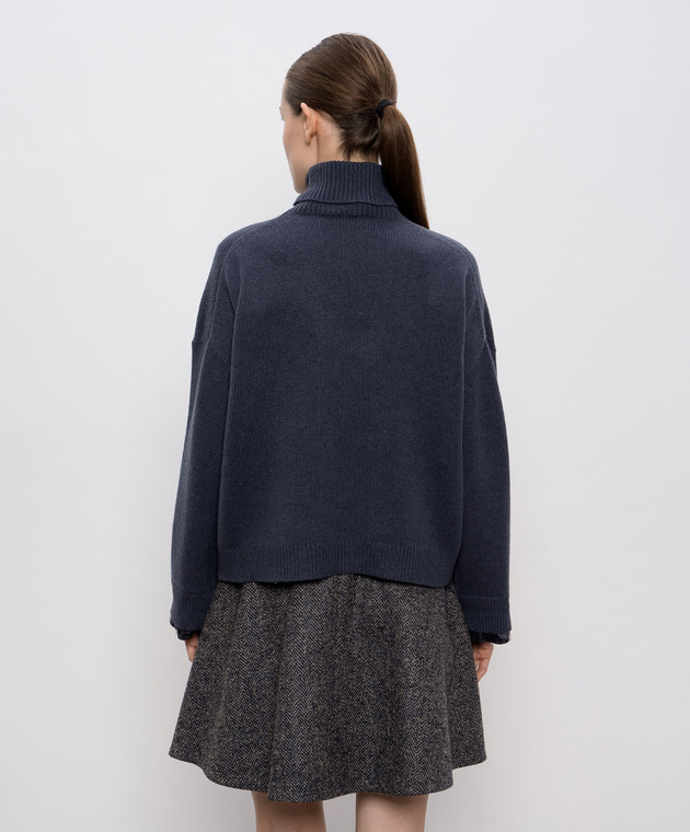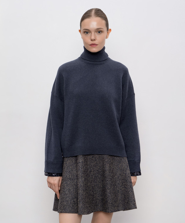 Синій светр з вовни кашеміру та шовку з паєтками
